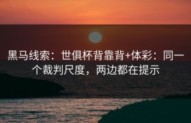 黑马线索:世俱杯背靠背+体彩:同一个裁判尺度,两边都在提示 导语 在世界杯式的商业化赛场上,...