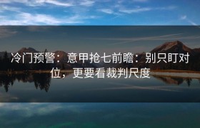 冷门预警:意甲抢七前瞻:别只盯对位,更要看裁判尺度 导读 随着赛季进入冲刺阶段,意甲抢七的格...