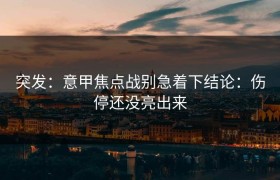 突发:意甲焦点战别急着下结论:伤停还没亮出来 导语 本轮意甲最引人关注的不是哪支球队抢走了头...