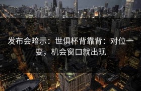 发布会暗示:世俱杯背靠背:对位一变,机会窗口就出现 最近的发布会释放出一个有趣的信号:世俱杯的背靠背...