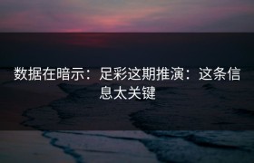 数据在暗示:足彩这期推演:这条信息太关键 导语 在持续滚动的赛季数据里,数字像灯塔,引导我们...